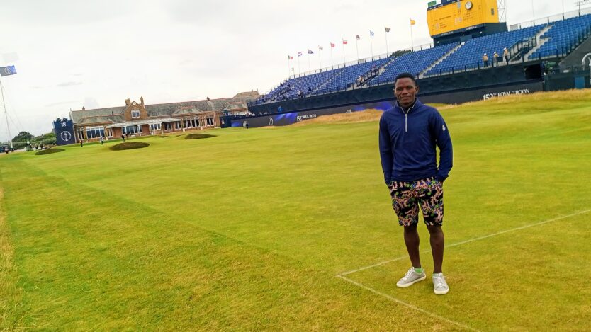 Founder of Uganda’s AFRIYEA Golf Academy, Isaiah Mwesige, was invited to attend Royal Troon Golf Club for the 152nd Open Championship as an advocate of sustainability in golf. The Academy has gained international recognition for its approach to education in East Africa, specifically around golf and sustainability, resulting in Isaiah featuring on Sky during the live coverage on Saturday.
